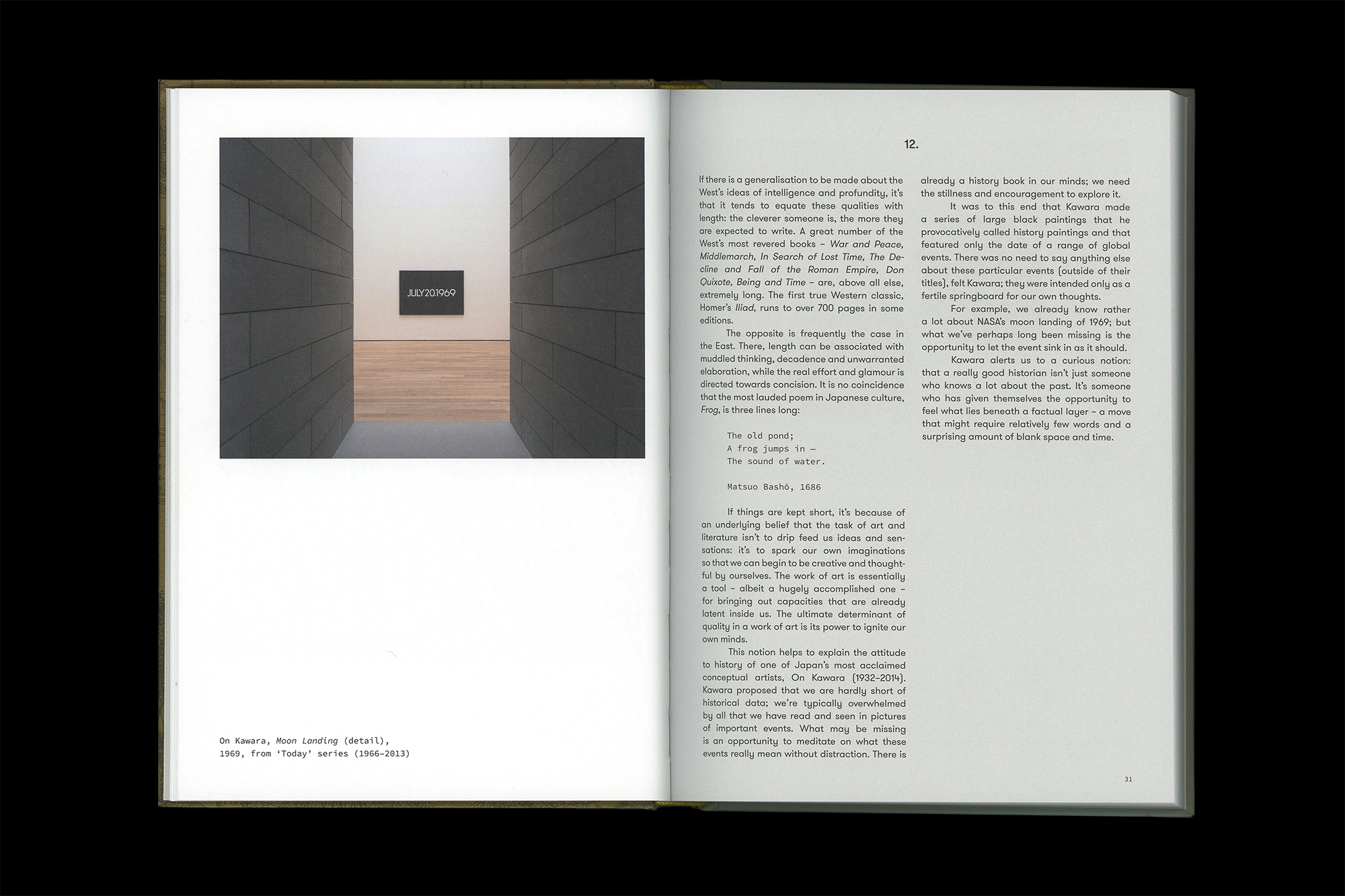 Design for series of art book focussing on difference aspects of art and culture. A combination of the fonts Source Code and GT Walsheim creates a modern and neutral background for the images, many of which are historic. The main layout adapts slightly for the different books depending on the prominence of headings and captions. Grey text pages contibute to making the images pages standout.